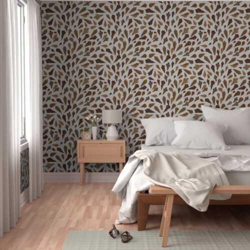 The gallery below shows the pattern applied to Spoonflower products, with an emphasis on wallpaper. Seeing it at room scale helped confirm the quiet, ground-based feeling I was aiming for.