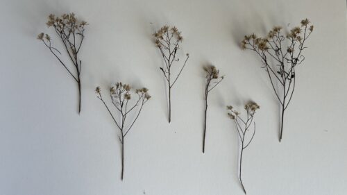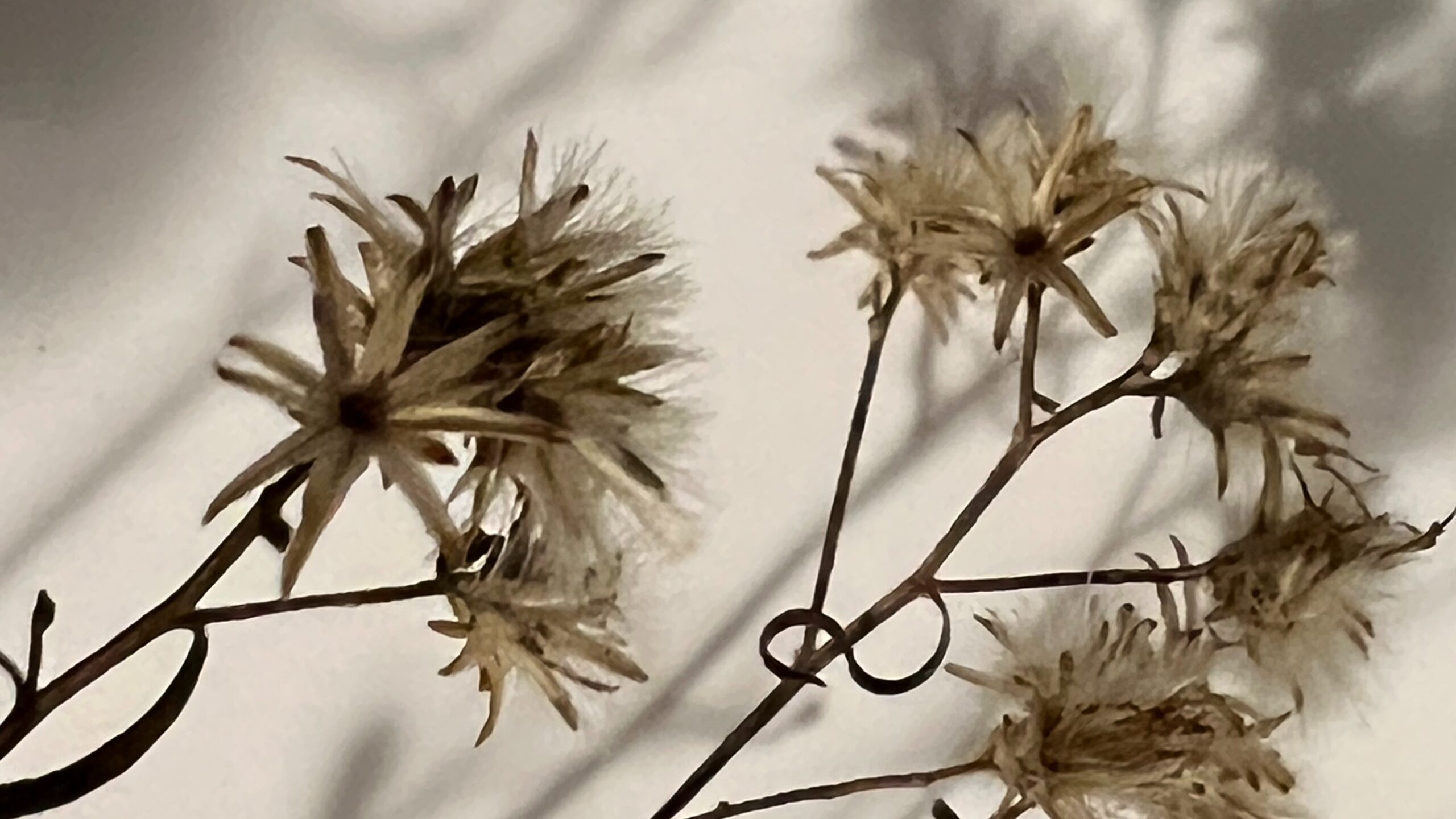 Seen this way, certain qualities became more pronounced: the irregular branching, the concentration of visual weight at the tips, the negative space between stems, and the contrast between soft flower heads and wiry supports.