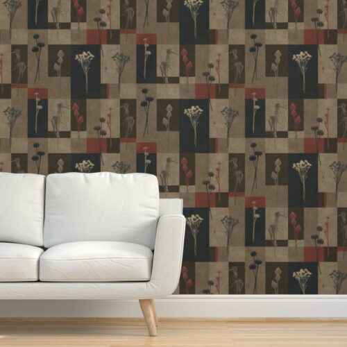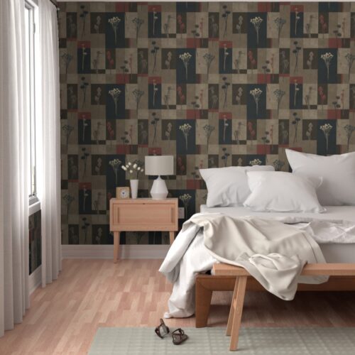 The final collage was converted to a half-drop repeat to further reduce grid rigidity and improve wall-scale flow. The pattern was uploaded to Spoonflower specifically to test the repeat in real-world previews.